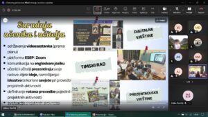 Tijekom webinara su prikazani konkretni primjeri uspješnih eTwinning projekata te digitalni alati i komunikacijske strategije koji olakšavaju rad sa školama partnerima diljem Europe. Kroz izlaganja učenika i njihovih mentora, sudionici su dobili uvid u to kako eTwinning potiče razmjenu ideja, tradicije i kulturnih obilježja. U kontekstu prikazivanja međunarodne suradnje poseban doprinos su tijekom izlaganja dale su učenica 4.a Petra V. te učenice 7.a Lena P. i Nika B., koje su zajedno s učiteljicama Marijom Bilić i Ljiljanom Štanfelj podijelile: